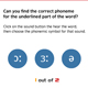 你知道下面单词划线部分的字母怎么发音吗?点击右上角的小喇叭来听听该单词的正确发音,然后为划线字母选出正确的音标。