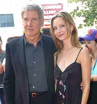 Harrison Ford and fiancee Calista Flockhart pose in Sydney at the premiere of Firewall.