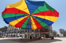 The record-breaking umbrella, made by a local company, measures 23 meters in diameter and is 18 meters tall.