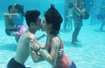 Eleven couples in swimsuits showed their love at an underwater kissing contest in a water park in Wuhan, Hubei province.