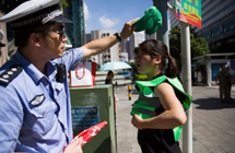 Residents in Luohu, Shenzhen had no choice but to wear green caps if they broke the traffic rules and run the red light while crossing roads.