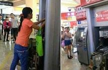 Police detained a woman for tearing open an ATM machine with her bare hands after claiming it swallowed her debit card.
