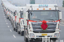 A groom in Harbin, Heilongjiang province used 36 brand-new environmentally-friendly trucks to pick up his bride.