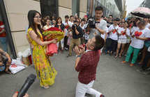 man who planned an elaborate marriage proposal on a busy street in Chengdu, Sichuan province, was taken away by police just moments after the girl said yes.