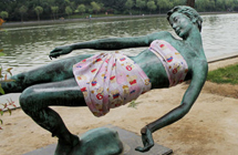 Some unknown residents in Zhengzhou, Henan province, have covered a sculpture with clothes.
