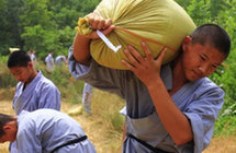 Monks from the famed Shaolin Temple are busy harvesting wheat.