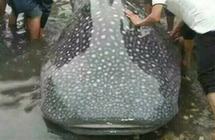 A Guangdong fisherman caught a whale shark that weighed around 1,500 kilograms and released it back to the sea.