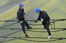 State Grid workers were pictured on 122-meter high-voltage wires.