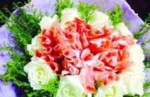 A young man proposed with a bouquet of "flowers" made of hotpot beef.