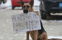 A dog has been seen on the streets of Jilin with a board held in her mouth reading that it was looking for her puppy.