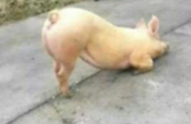 A large pig groveled in front of a temple in Wenzhou, Zhejiang province when the temple held a final day for confessions