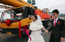 In a county of Hangzhou city, a couple picked unique vehicles for their wedding motorcade.