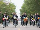 A groom, surnamed Wu, took his bride on a bike to the site of the wedding ceremony with 20 fellow cyclists following the couple on the streets of Nanjing.