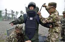 The Explosive Ordnance Disposal team of armed police in Chongqing needs to wear 26 kg suit when removing explosives during training and work.
