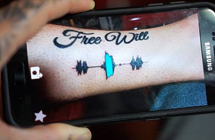 纹身发出的声音可以是一句语音、一首歌、一声狗吠,任何声音都可以。