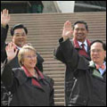 参加本届APEC峰会的21位总统、总理及地区领导人们穿着大大的、适用于各种天气的防水风衣在悉尼歌剧院前拍了今年的“全家福”。这款服装对于本届峰会第一天悉尼的阴雨天气来说还是很合适的。