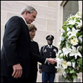 昨天是美国9•11恐怖袭击事件五周年纪念日,美国全国各地和世界上很多其它地方都举行了各种形式的纪念仪式,人们在悼念活动中默哀,缅怀9•11恐怖袭击的近3000名遇难者。