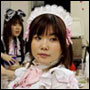 "大人,欢迎光临",身着粉红服装的女服务员一边说着一边向来客深鞠躬,同时,把双手合放在古板的围裙上。