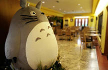 菜品包括小龙猫形状的馒头蘸焦糖酱、面条、米饭,当然还有鸡翅膀。